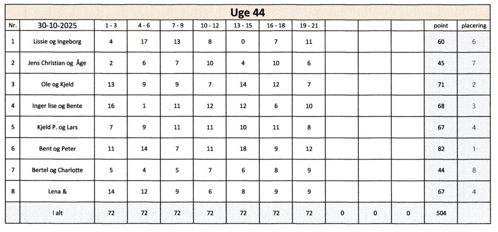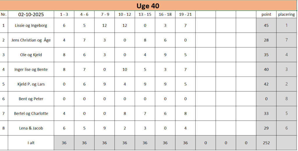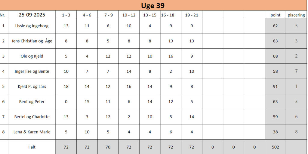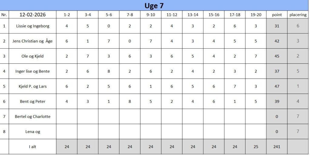 KLIK PÅ RESULTATSKEMAET OG SE DET I EN STØRRE UDGAVE.